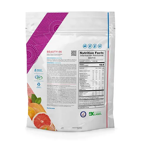Delicioso refresco de Guayaba, Toronja y Camu Camu, enriquecido con Péptidos de Colágeno BioActivo y Biotina, creado por FuXion para el cuidado y la regeneración de tu piel, dándole firmeza y elasticidad.